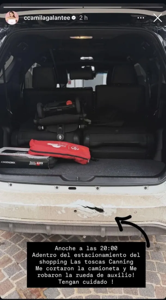 La propia Galante decidió hacer público el hecho a través de sus redes sociales, donde compartió su experiencia y lanzó una advertencia a sus seguidores. “Me cortaron la camioneta y me robaron la rueda de auxilio. Tengan cuidado”, escribió, visiblemente molesta por la situación.