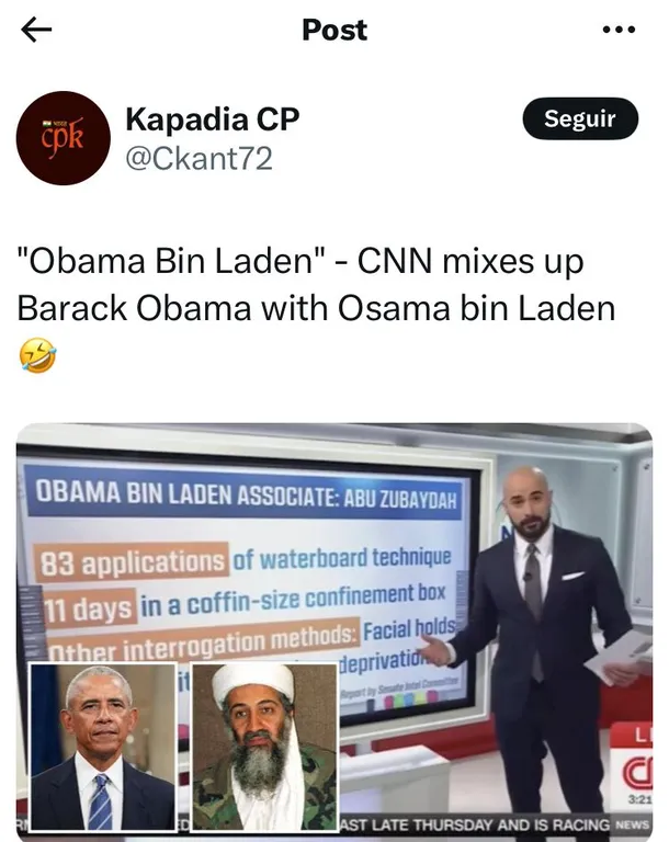 La cadena de noticias de los Estados Unidos CNN rebautizó a Osama Bin Laden como "Obama Bin Laden" y explotaron las redes sociales.