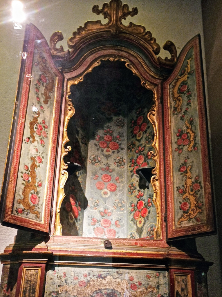 Se exhiben pequeños altares decorados en policromías que se encontraban en las casas de familias pudientes de la ciudad. Algunas de ellas contaban con su propia capilla.