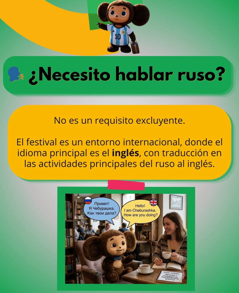 Durante la presentación también se anunciaron propuestas vinculadas al intercambio cultural y académico. La directora de la Casa Rusa en Buenos Aires, Dina Oyun, invitó a los jóvenes a involucrarse activamente en la preparación para el festival y a acercarse al estudio del idioma ruso.